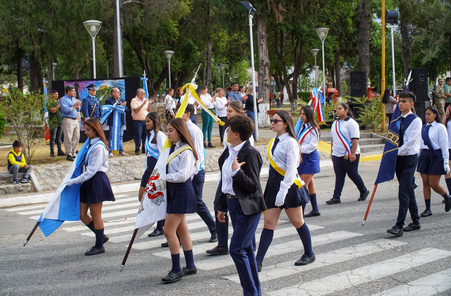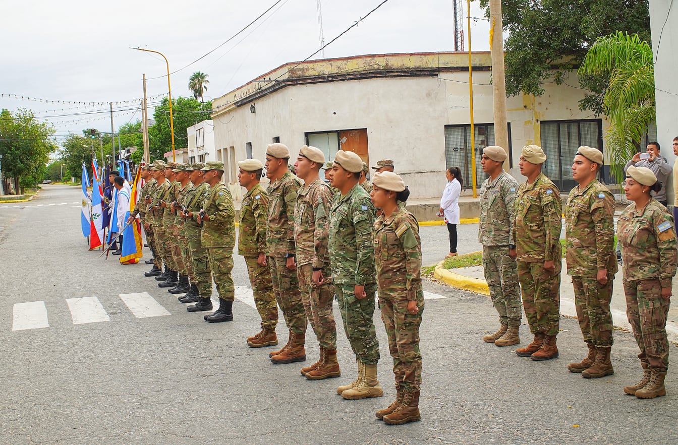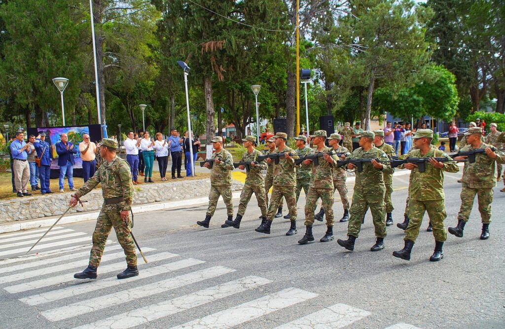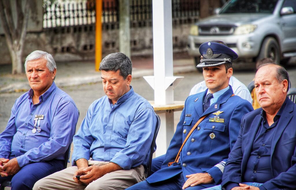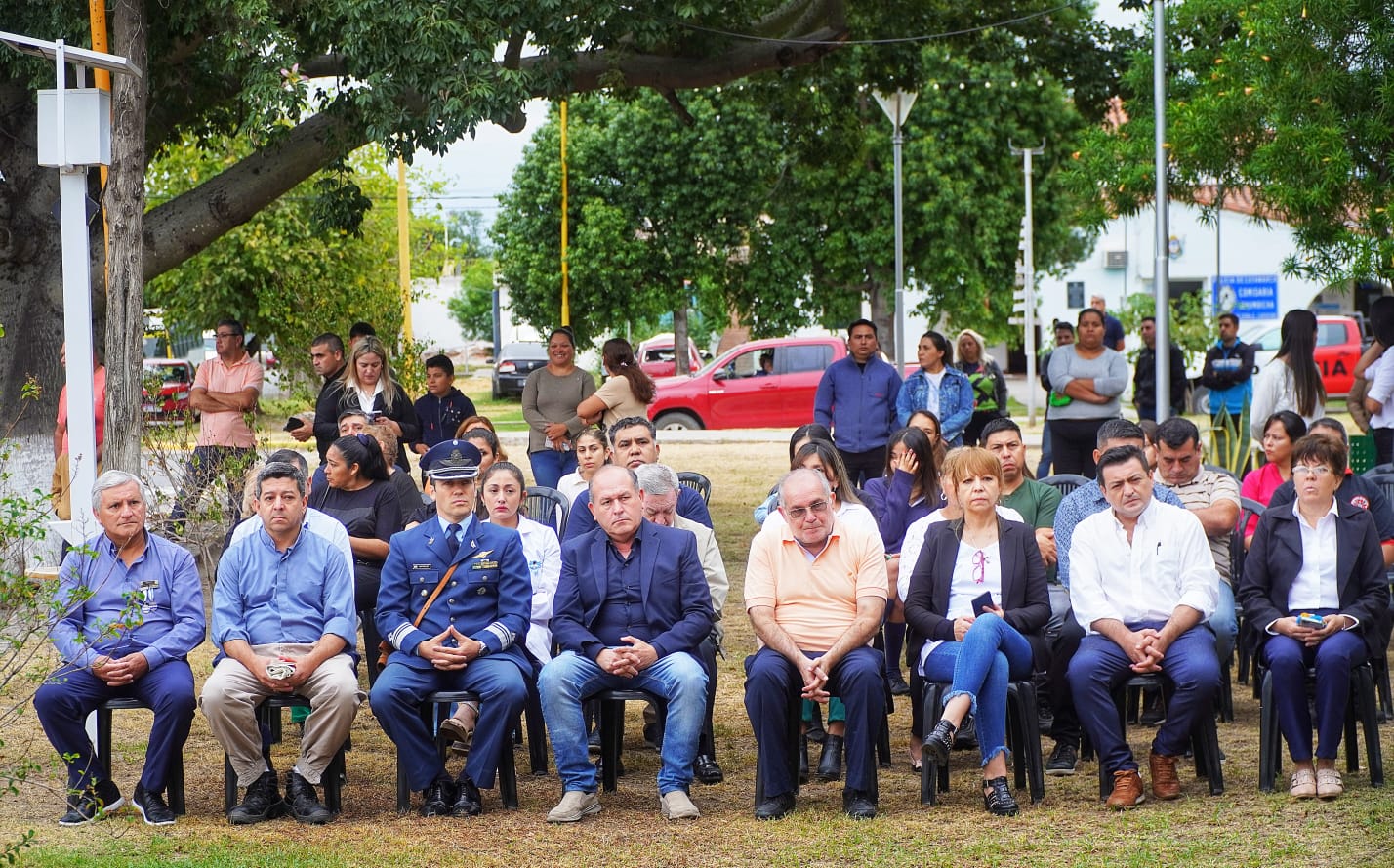 Estuvieron presentes el Mayor Sebastián Raptopulos (Fuerza Área), el Teniente Nelsón Rojas (a cargo del desfile), el Sargento de Infantería Leonardo Martoccia, el presidente del CD, Miguel David, los ediles Verónica Ledesma, José Llompart, Josefina Quintero y Roberto Córdoba; más la vicedirectora del CPCOH Nivel Secundario, Elizabeth Perez, la directora de la Escuela para Adultos N° 24, Zulma Arias, por la N° 179 la docente Estafania Cativa y representantes del EPI Achalay.