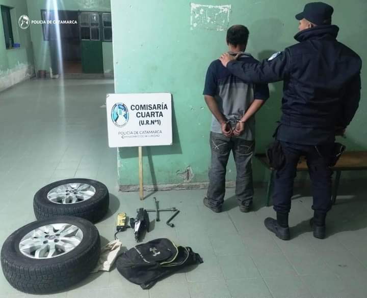 Esta madrugada, a las 4:00 horas, mientras efectivos de la Comisaría Cuarta realizaban recorridos preventivos por la esquina de avenida Juan Pablo Vera y calle Los Churquis, un hombre les relató que desconocidos le habían sustraído dos neumáticos de su camioneta Fiat Strada, que estaba estacionada en el lugar.