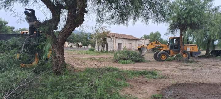 Mientras que en el predio del antiguo ferrocarril se limpió, niveló y levantó la copa de los árboles.