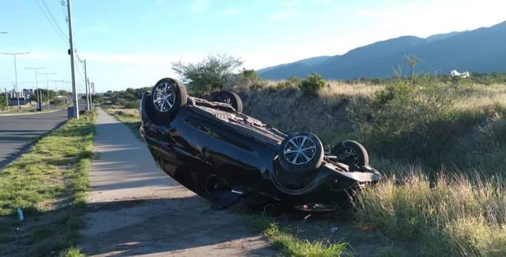En una de las arterias, por causas a determinar, un automóvil en el que se conducían Brian Durán (25) y Tomás Cejas (19) se salió de la calzada, se subió a la vereda y terminó volcando.