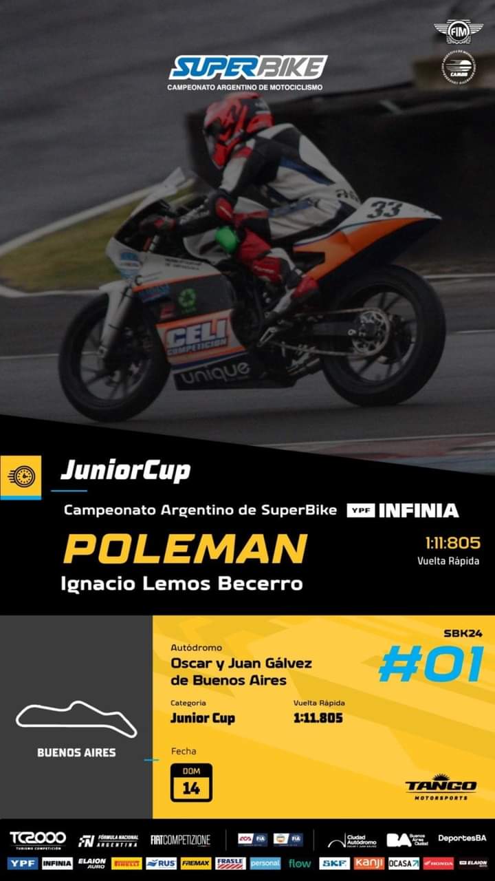 El chumbichano clasificó en punta en las tandas de entrenamientos y clasificación oficial bajo la lluvia y largará mañana en la punta de la carrera final del espectáculo que el Superbike Argentino comparte con el TC2000 en el Autodromo Oscar y Juan Gálvez.