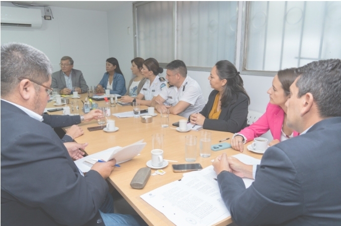 A partir del tratamiento de proyectos que se encuentran en evaluación para el periodo de sesiones extraordinarias, las Comisiones de Legislación General y de Justicia, Seguridad y Derechos Humanos de la Cámara de Senadores se reunieron ayer por la mañana con autoridades del Poder Ejecutivo Provincial, entre ellos el secretario de Seguridad, Martín Miranda, el Director de Coordinación y Ejecución, Emiliano Carignano y del IES Policial.