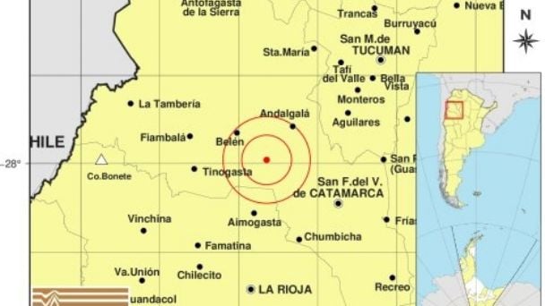 De acuerdo a los datos difundidos, el movimiento ocurrió a las 23:56 (hora local) y tuvo su epicentro a 51 kilómetros al sureste de Belén, a 54 kilómetros al suroeste de Andalgalá y a 69 kilómetros al norte de Aimogasta.