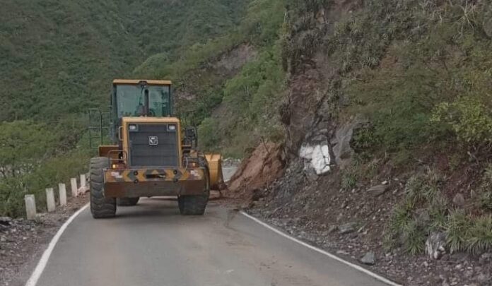 Personal de Vialidad Provincial, desde horas tempranas de esta domingo, realizó tareas de limpieza en la calzada para despejar los derrumbes producto de las últimas precipitaciones caídas en el sector.
