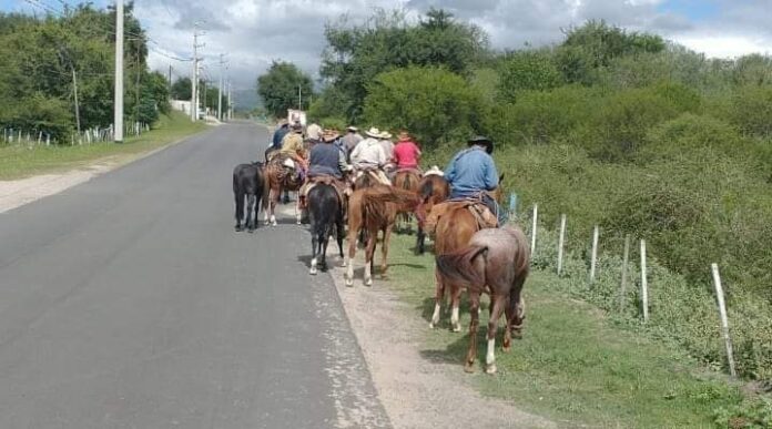 La devota Agrupación Gaucha San Francisco de Asís avanza con fe en su peregrinación hacia los sagrados dominios de la Virgen del Valle.